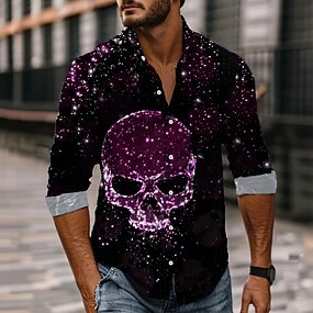 Homens Caveiras Purpurina Brilhante Finados Camisa Social camisa de botão Manga Longa Estilo gótico escuro Feriado Primavera Outono Aberto para a Lateral Impressão 3D camisas de colarinho Um bolso