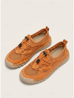 Tênis feminino cáqui respirável para caminhada – calçado leve de malha sem cadarço, confortável e antiderrapante, ideal para viagens e atividades ao ar livre. &uso diário