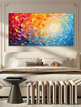 pintura de sol ardente em tela pintada à mão arte do sol radiante colorido arte de parede texturizada arte de parede em tela boho pintura a óleo de textura colorida para arte de sala de estar