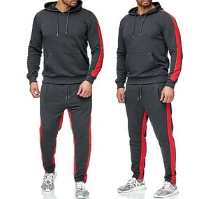 Homens Moletom Suéter Fatos de jogging Preto Branco Amarelo Vermelho Cinzento Com Capuz Bloco de cor Patchwork 2 Peças Desportos e Ar livre Diário Esportes Básico Casual Grande e Alto Outono Primavera