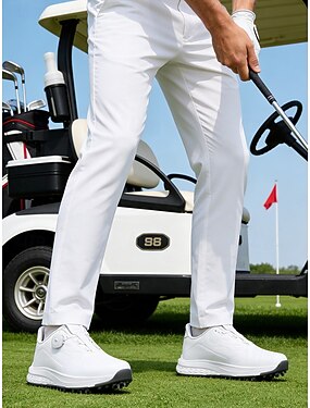 Tênis de golfe masculino branco com sola flexível, esportivo e confortável, ideal para golfe e atividades ao ar livre.
