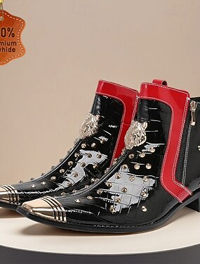 Botas de cano curto masculinas em couro legítimo com design abstrato e colorido - arte multicolorida arrojada com biqueiras metálicas, perfeitas para eventos da moda, festas e saídas noturnas.