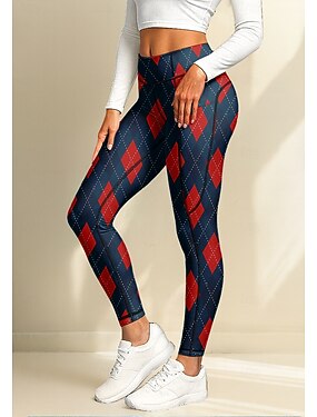 Mulheres leggings de pilates Calças de fitness Leggings de Ginástica Bolsos Imposto de selo Bolsos laterais Pilates Academia Treino de Ginástica Calças Meia-calça Leggings Xadrez Vermelho Esportes