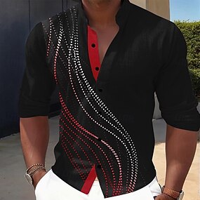 Homens Geométrica Linha Arte abstrata Camisa Social camisa de botão Manga Curta Business casual Diário Ao ar livre Férias Verão Primavera Aberto para a Lateral Impressão 3D Camisa tipo linho Azul