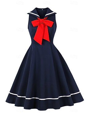 Anos 50 Retro Vintage Até os Joelhos Vestidos Vestido swing Vestido Flare Sem Mangas Linha A Fantasia Mulheres 4 de julho Dia da Independência Adulto Vestido Primavera Verão