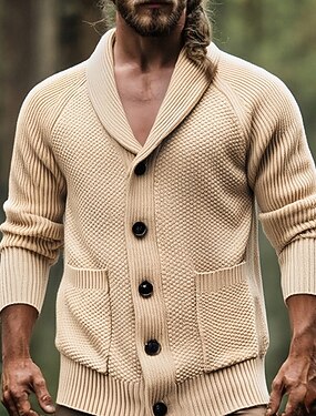 Homens Suéter Jacquard Sueter Cardigan Suéter Cortado Estriado Crochê Tricotar Padrão Abotoar Jacquard Vintage Xale Moda Clássico Roupa Diária Encontro Roupa Outono & inverno Caqui M L XL