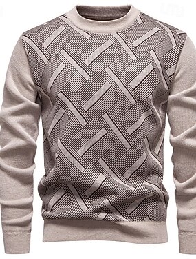 Homens Moletom Preto Branco Verde Tropa Cáqui Cinzento Escuro Gola Redonda Tecido Jacquard Estriado Textura Textura de malha Desportos e Ar livre Diário Feriado Poliéster Roupa de rua Básico Casual