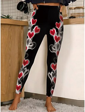 Mulheres Leggings Leggings aconchegantes Férias Casual Comprimento total Cintura AltaPantsDia dos Namorados Coração Floral Gráfico Estampado Confortável Com Stretch Casual Diário Férias Preto Vermelho