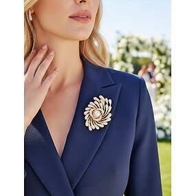 Broche feminino em liga metálica com pérola sintética, nas cores dourada e prateada, com elegante design espiral que remete a fogos de artifício, perfeito para casamentos e jantares formais.