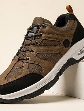 Tênis de caminhada masculino em mesh bege – tênis leves para atividades ao ar livre com cabedal respirável e sola resistente, perfeitos para caminhadas, trilhas e esportes.