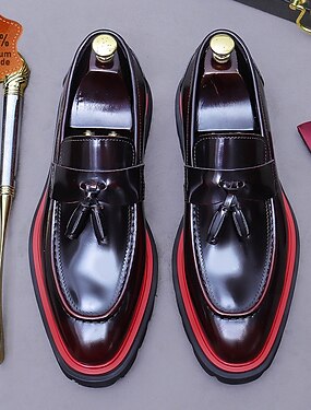 Mocassins masculinos em verniz bordô – sapatos sociais clássicos sem fecho, ideais para ocasiões formais de negócios, casamentos e eventos noturnos.