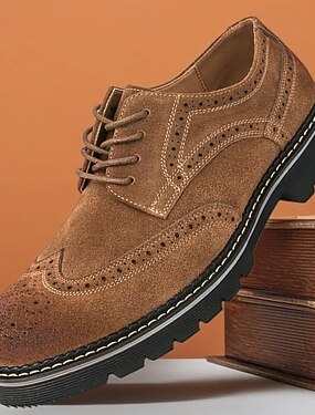 Sapatos brogue masculinos em camurça marrom, confortáveis e estilosos, calçado versátil para eventos casuais e semiformal.