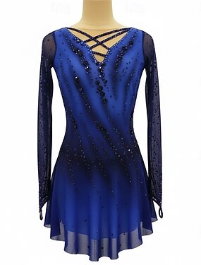 Vestidos para Patinação Artística Para Meninas Patinação no Gelo Vestidos Azul / Preto Patchwork Barra Assimétrica Elasticidade Alta Treino Competição Roupa para Patinação Clássico Cristal / Strass