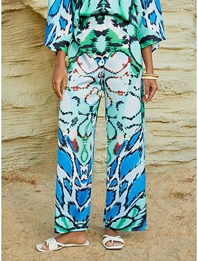 calças de férias em cetim sedoso estilo terra das maravilhas