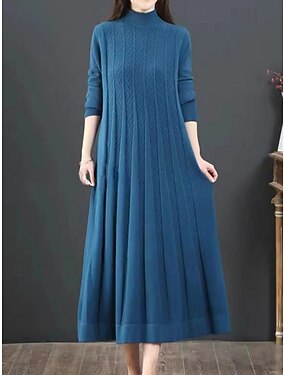 Mulheres Vestido de moletom Elegante Casual Macia Cor imaculada Estriado Gola Alta Tricotado Manga Longa Tops longos Tricotar Ao ar livre Diário Final de semana Azul Preto Outono Inverno