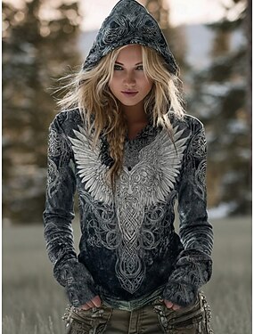 Mulheres Pulôver Moletom Com Capuz Floral Animal Tribal Vintage Casual Manga Longa Com Capuz Tops regulares Casual Verde Primavera Outono Inverno