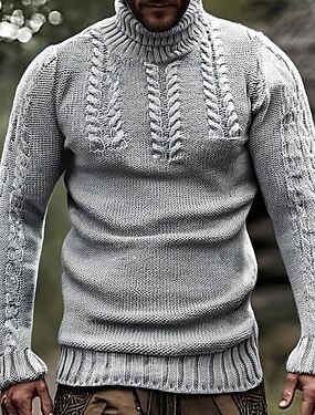 Homens Suéter de Natal camisolas de natal Suéter de gola alta Suéter Pulôver suéter Cabo Tricotar Túnica Tricotado Côr Sólida Gola Alta Mantenha Quente Trabalho Roupa Diária Roupa Outono Inverno