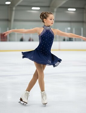Vestidos para Patinação Artística Para Meninas Patinação no Gelo Vestidos Azul Marinho Escuro Patchwork Barra Assimétrica Elasticidade Alta Treino Competição Roupa para Patinação Clássico Cristal