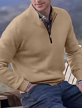 Homens Pulôver suéter Suéteres com zíper Suéter de malha Estriado Tricotar Tops regulares Tricotado Tecido Meio Zíper Moda Casual Férias Roupa Diária Roupa Outono Inverno Preto cáqui M L XL