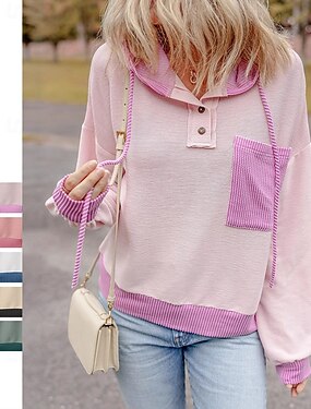 Mulheres Bloco de cor Pulôver com capuz Moletons casuais Primavera Outono Patchwork Com bolsos Manga Longa Casual Roupa Esportiva Exterior Viagem Esportivo Adamascado Rosa claro Azul Roupa de esporte