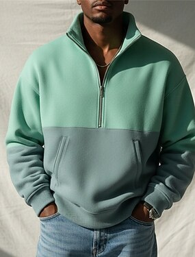 Homens Moletom Moletom com zíper Adamascado Preto Branco Verde Tropa Azul Marinha Meio Zíper Bloco de cor Patchwork Desportos e Ar livre Diário Feriado Poliéster Veludo Roupa de rua Básico Casual