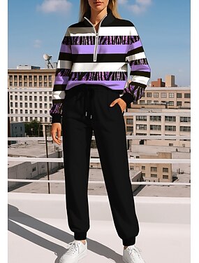 Mulheres Moletom Suéter Roupa de corrida Com Cordão Zíper Geométrica Jaquetas e Calças Para Esporte Conjunto de roupa atlética Primavera Outono Inverno Roxo Casual Exercite-se Exterior Macio Folgado