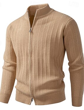 Homens Sueter Cardigan Suéter Cortado Suéter com zíper Suéter de malha Estriado Tricotar Tops regulares Tricotado Rena Colarinho Chinês Natal Moda Férias Roupa Diária Roupa Outono Inverno Caqui Café