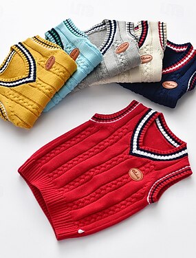 Infantil Unisexo Pulôver suéter Bloco de cor Sem Manga Mantenha Quente Ao ar livre Moda Amarelo Outono Roupas 4 anos +