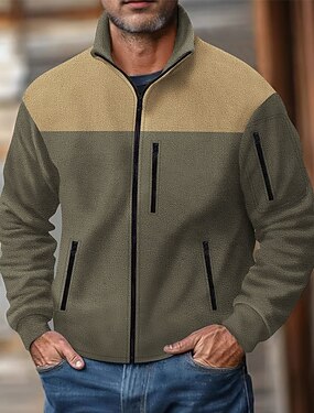 Homens Moletom Preto Verde Tropa Cáqui Cinzento Colarinho Clerical Bloco de cor Rena Patchwork Desportos e Ar livre Diário Feriado Poliéster Veludo Roupa de rua Básico Casual Primavera & Outono Roupa