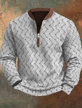 Homens Moletom Moletom com zíper Azul Preto Branco Marron Cáqui Meio Zíper Geométrica Zíper Diário Desportos e Ar livre Feriado Poliéster Roupa de rua Básico Casual Primavera Outono Roupa Moletons