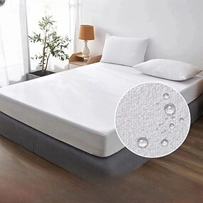 Protetor de Cama para Queen Full King Capa Protetora de Colchão à Prova d'Água Lençol com Ajuste Protetor de Cama Capa de Colchão Superfície Lisa Respirável Amiga da Pele Silenciosa