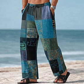 Homens Geométrica Bloco de cor Retalhos Calças Calça casual Calças largas Cintura Média Moda Casa Ao ar livre Férias Cintura elástica com cordão Calças de linho com bolsos Verão Primavera Impressão 3D