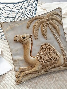 Capa de almofada Oasis Camel com estampa plana 2D, design de um lado, fechamento com zíper, lavável à máquina, capa de almofada decorativa para sofá e decoração de casa.