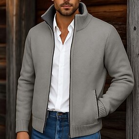 Homens Suéter Sueter Cardigan Suéter com zíper Casaco de Suéter Suéter de lã Estriado Tricotar Tops regulares Estilo Clássico Tosão Côr Sólida Gola Alta Clássico Chique & Moderno Casual Diário Roupa