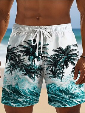 Homens Folha Coqueiro Plantas Shorts de Natação Bermuda de Surf Calção de Banho Cintura Média Moda Roupa de rua Designer Casual Diário Feriado Bolsos Com Cordão Cintura elástica Designer Roupa