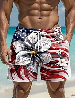Shorts de Natação Patrióticos do Dia da Independência da Bandeira dos EUA para Homens Board Shorts Trunks de Natação Cintura Média Streetwear Feriado Hawaiian Bolsos Laterais Forro de Malha Cintura