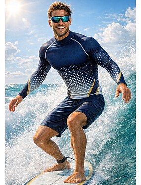Homens Anti Atrito Camisa de Natação Geométrica Gradiente UPF50+ Proteção UV Secagem Rápida Manga Longa Roupa de Banho Anti Atrito Surfe Canoagem Praia Verão