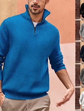 Homens Suéter Pulôver suéter Estriado Tricotar Tops regulares Tricotado Corte Justo Tecido Gola Alta Roupa de Malha Moderna Casual Roupa Diária Roupa Outono Preto Branco M L XL