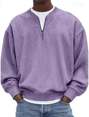 Homens Moletom Moletom com zíper Preto Rosa Azul Marinha Roxo Verde Meio Zíper Tecido Quarter Zip Diário Desportos e Ar livre Feriado Poliéster Roupa de rua Básico Casual Primavera Outono Roupa