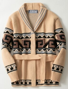 Homens Suéter Sueter Cardigan Suéter Fair Isle Estriado Tricotar Curto Com cinto Tricotado Tecido Xale Férias Moda Casual Roupa Diária Roupa Outono Primavera & Outono Caqui M L XL