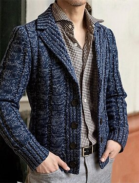 Homens Suéter Pulôver suéter Estriado Tricotar Tops regulares Abotoar Tricotado Tecido Aberto para a Lateral Roupa de Malha Moderna Casual Roupa Diária Roupa Outono & inverno Azul S M L