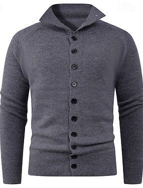 Homens Sueter Cardigan Suéter de malha Estriado Tricotar Padrão Abotoar Côr Sólida Colarinho Chinês Moda Clássico Roupa Diária Encontro Roupa Outono & inverno Preto Azul Marinho Escuro M L XL