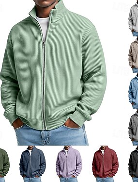 Homens Suéter Vestido Suéter Sueter Cardigan Suéter com zíper Suéter de malha Estriado Tricotar Tops regulares Tricotado Estriado Tecido Gola Alta Moda Xales Casual Roupa Diária Roupa Outono Inverno