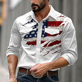 Homens American US Flag 4 de julho - 250º aniversário dos EUA camisa ocidental camisa de botão Manga Longa Ocidental Casual Casual Primavera Outono Aberto para a Lateral Abotoar 2 bolsos Branco 1