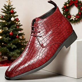 Botas masculinas de couro sintético com estampa de crocodilo vermelho – sapatos sociais com cadarço da moda para festas, vida noturna e ocasiões especiais