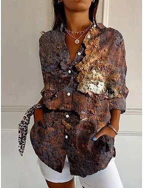 Camisa Feminina Linho Semelhante Respirável Leve Camisa Tunic com Botão Colarinho Manga Longa Floral Ombre Gráfico Vintage Tropical Havaiano Trabalho Dia a Dia Impressão Azul Laranja Marrom Verde