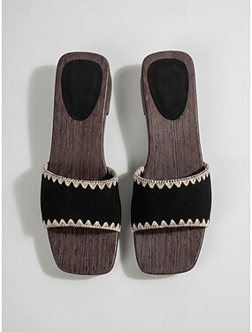 Sandálias femininas pretas com strass e formato de folha - elegantes mules de salto baixo e grosso, perfeitas para férias luxuosas à beira da piscina em resorts tropicais. &eventos noturnos de verão