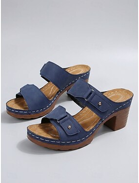Sandálias femininas casuais com salto grosso – sandálias confortáveis para uso diário, festas no jardim e passeios casuais.