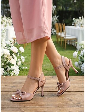 Sapatos de salto agulha com tira no tornozelo em veludo e laço grande – elegantes sapatos de salto para noivas e festas de casamento.