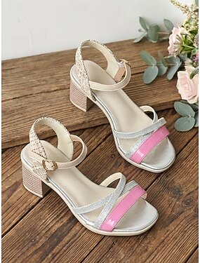 Sandálias femininas rosa-claro com tiras e salto médio - estilo casual chique e elegante, com salto acolchoado confortável para o trabalho, festas, casamentos, viagens e eventos de verão.